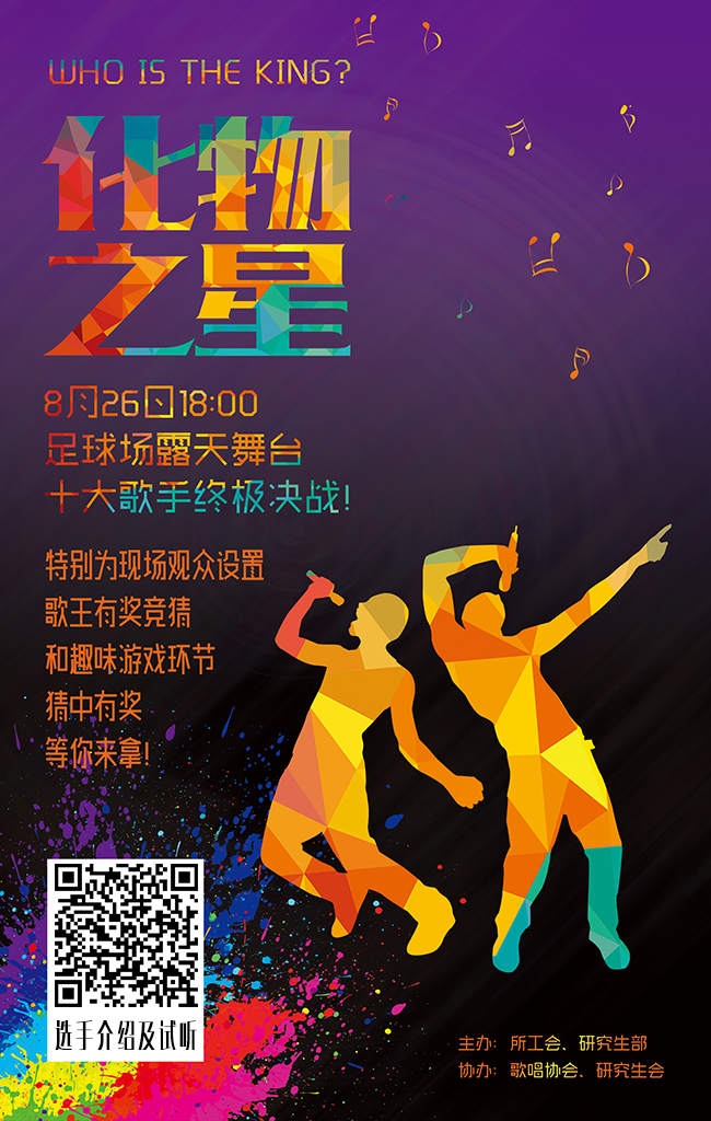 请扫描海报上二维码,查看歌手介绍及演唱试听。