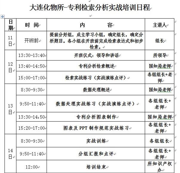 为提高我所专利检索分析的能力,现定于9月12日至14日在大连举办专利检索分析实战培训班,现将有关事宜通知如下: