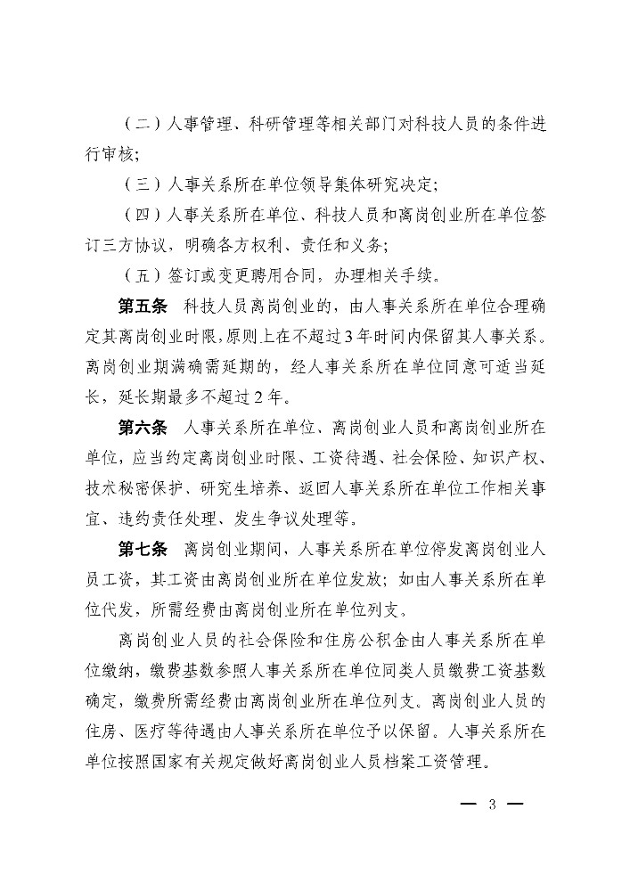 关于转发《中国科学院科技人员离岗创业管理暂行办法》的通知