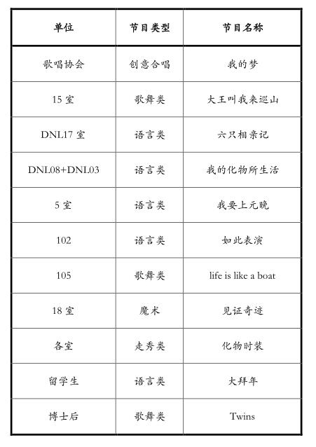 需要彩排的节目如下:(节目顺序不代表彩排顺序)