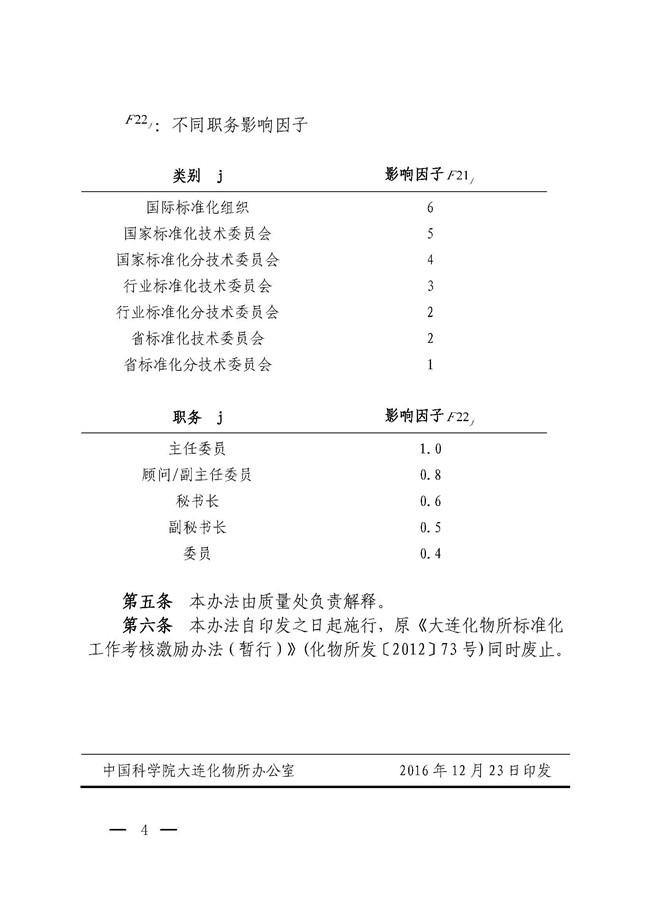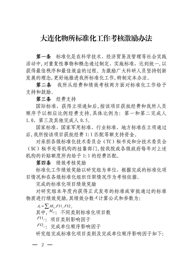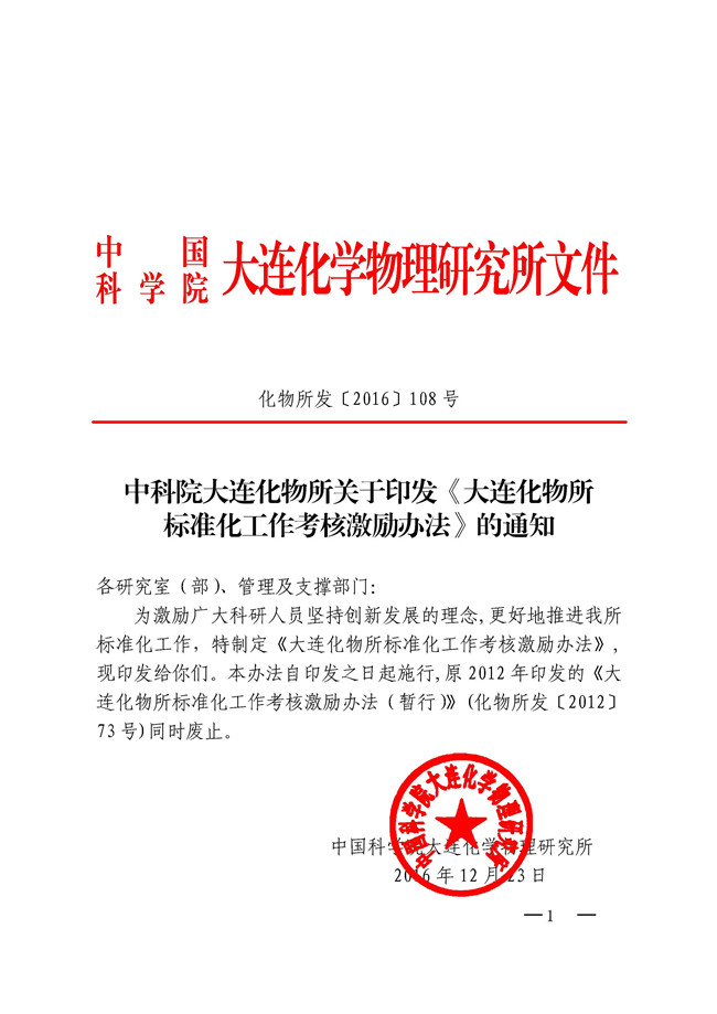 中科院大连化物所关于印发《大连化物所标准化工作考核激励办法》的通知