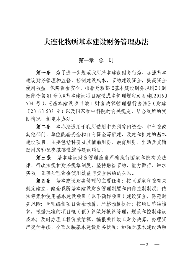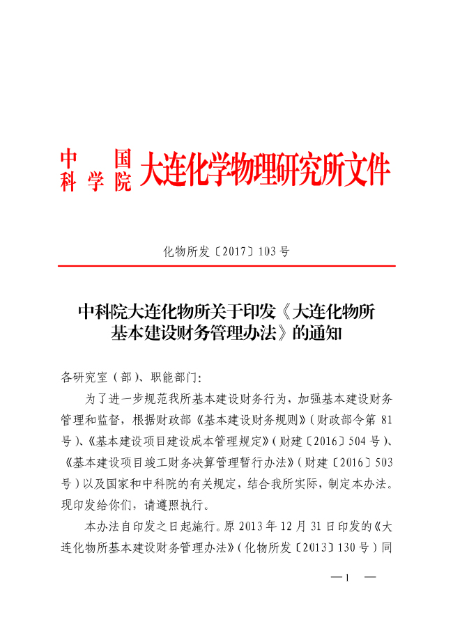 中科院大连化物所关于印发《大连化物所基本建设财务管理办法》的通知