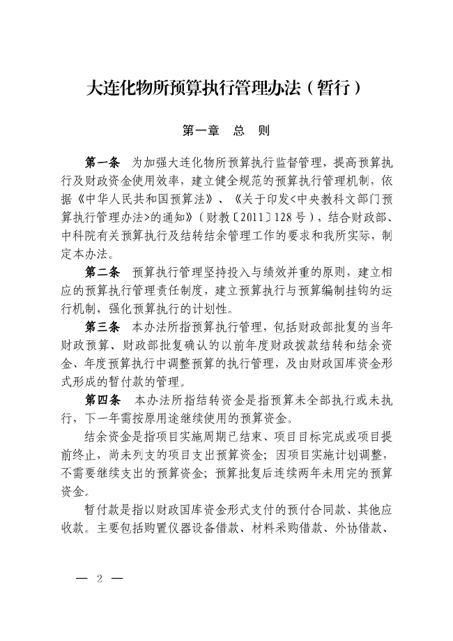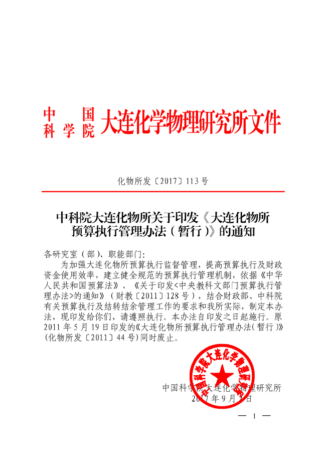 中科院大连化物所关于印发《大连化物所预算执行管理办法(暂行)》的通知