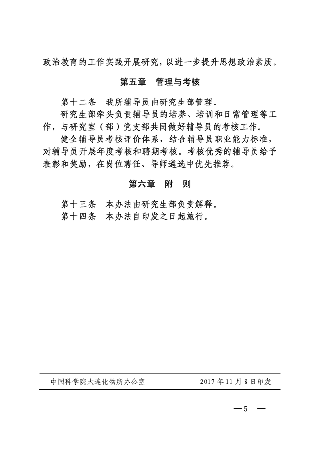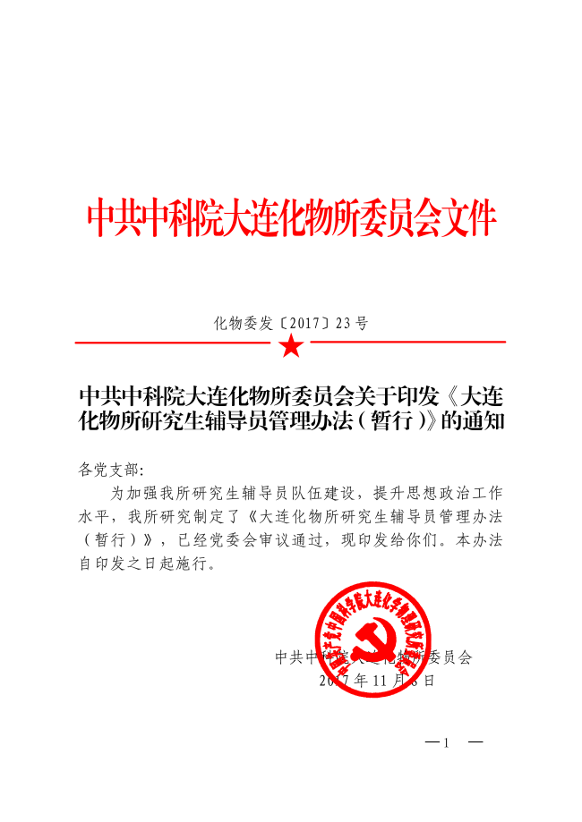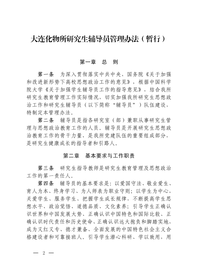 中共中科院大连化物所委员会关于印发《大连化物所研究生辅导员管理办法(暂行)》的通知