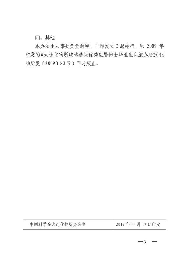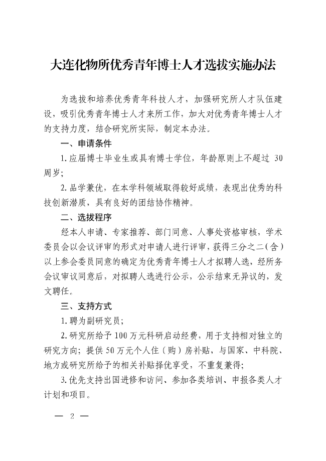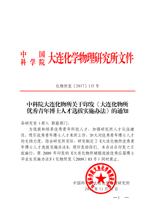 中科院大连化物所关于印发《大连化物所优秀青年博士人才选拔实施办法》的通知