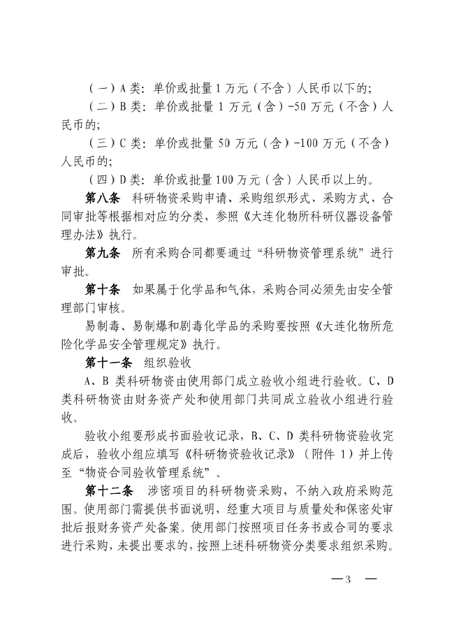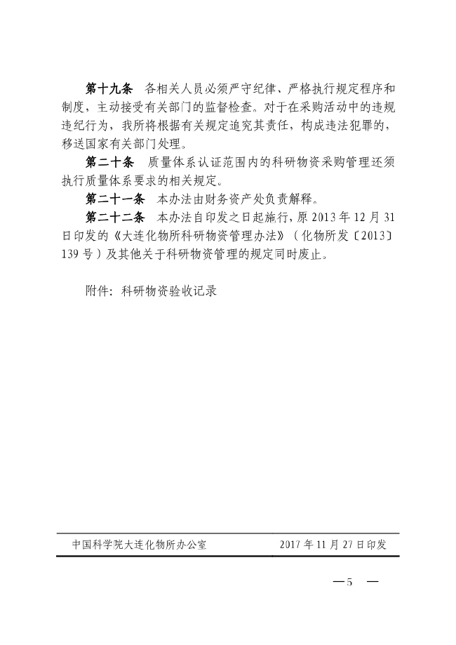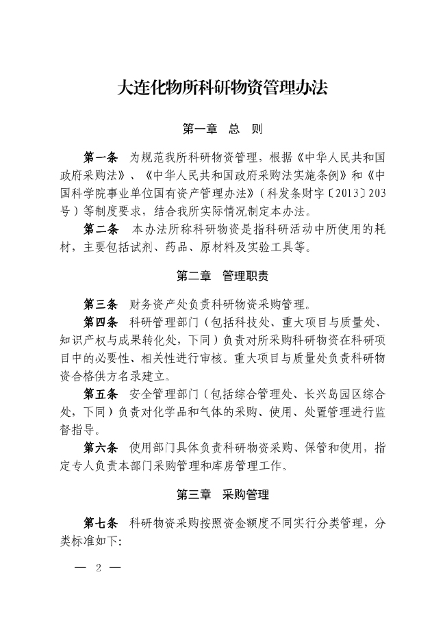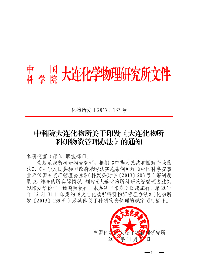 中科院大连化物所关于印发《大连化物所科研物资管理办法》的通知