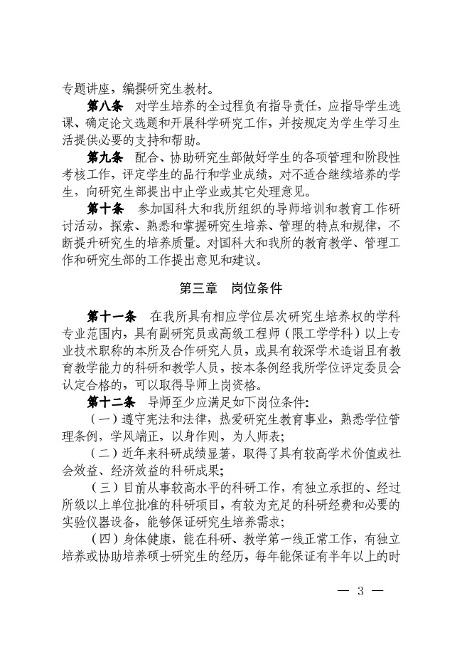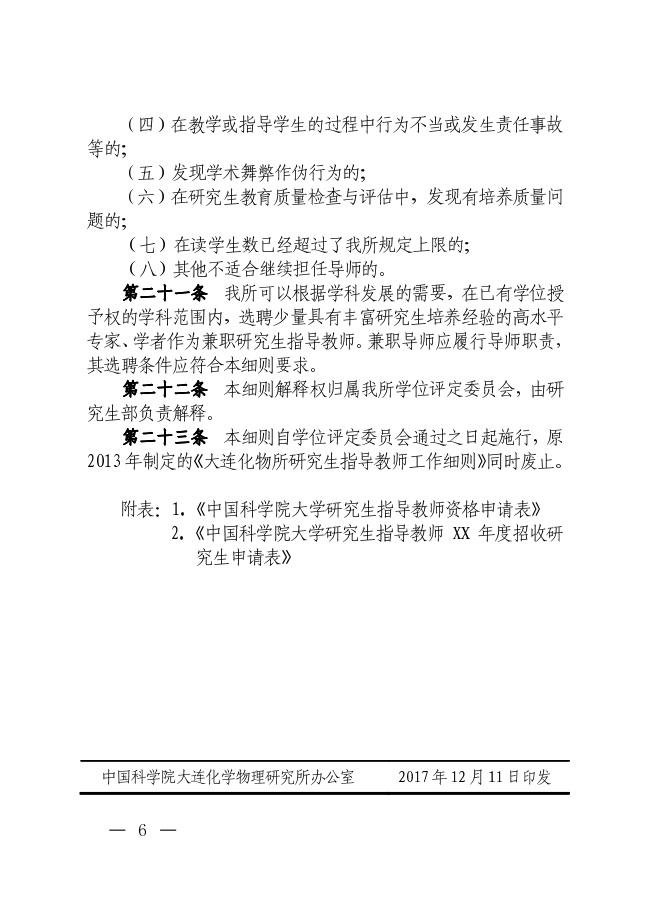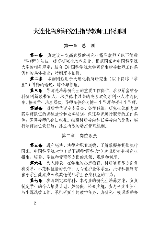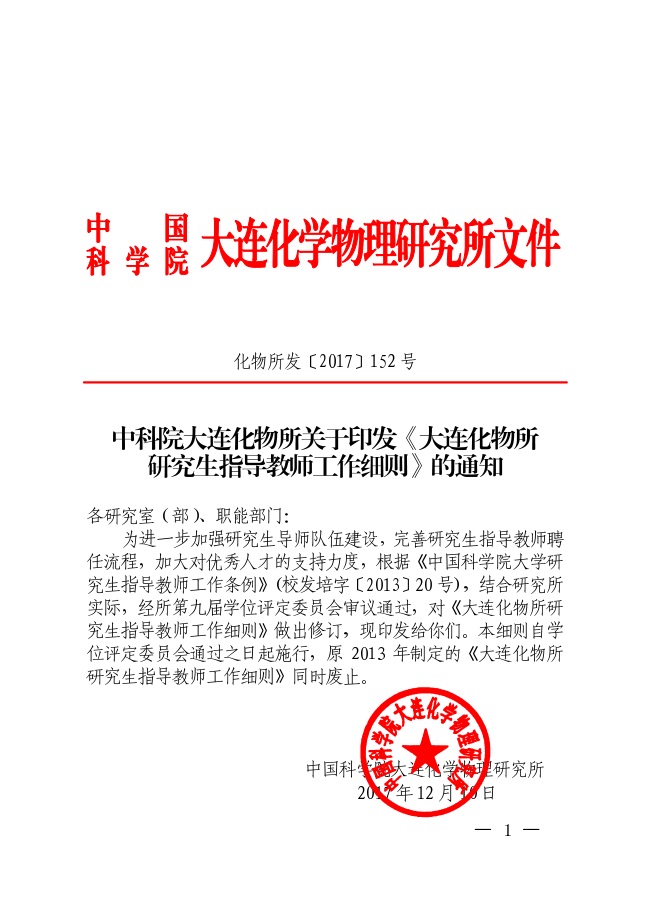 中科院大连化物所关于印发《大连化物所研究生指导教师工作细则》的通知