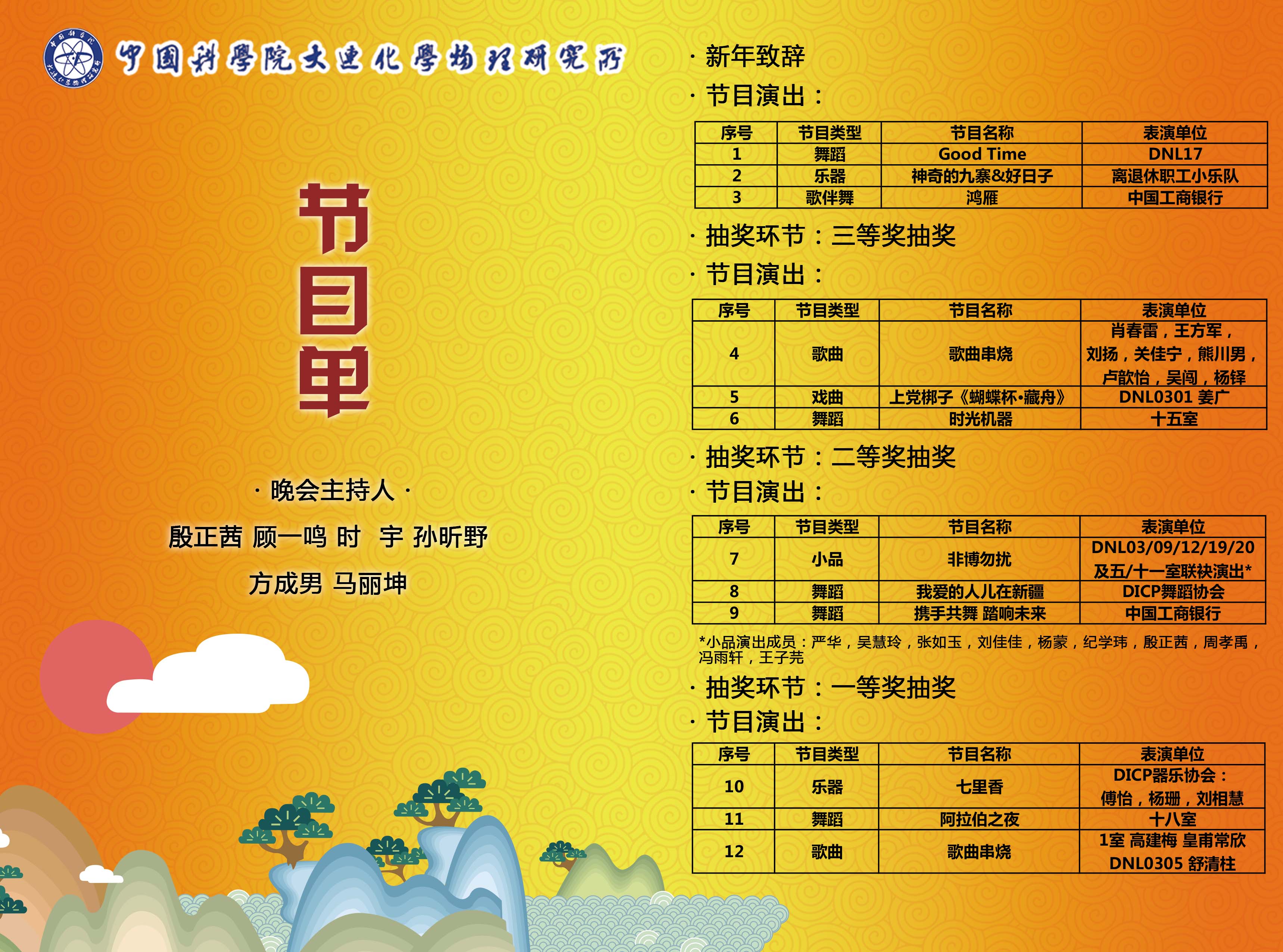 为迎接新年的到来,营造活泼欢快的节日气氛,为我所师生提供一个展示风采的舞台,使大家在欢声笑语中结束一年的辛勤工作,我所研究生部、研究生会特举办“雄鸡仰歌欢颂强国梦,神犬长啸喜赞新时代”主题元旦晚会。