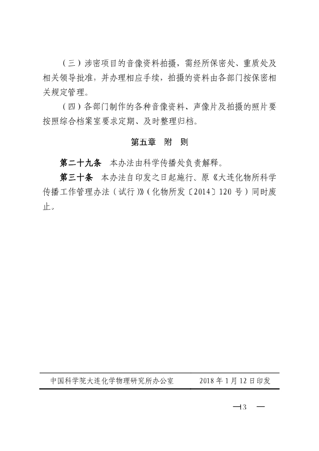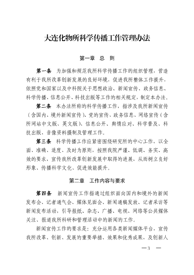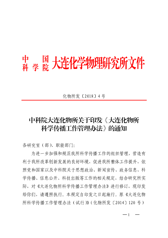 中科院大连化物所关于印发《大连化物所科学传播工作管理办法》的通知