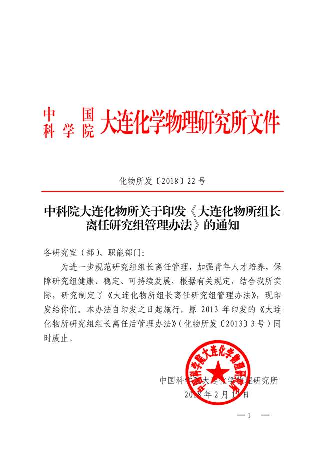 中科院大连化物所关于印发《大连化物所组长离任研究组管理办法》的通知