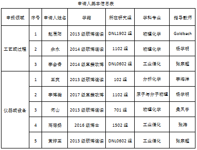 根据《中国科学院大连化学物理研究所与美国通用仪器公司“DICP-Varsal技术创新奖”协议书》要求,本着“公平、公正、公开”的原则,现对2018年“DICP-Varsal技术创新奖”申请人基本信息和申报材料(详见附件)予以公示。