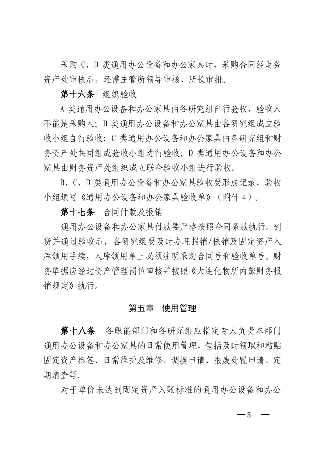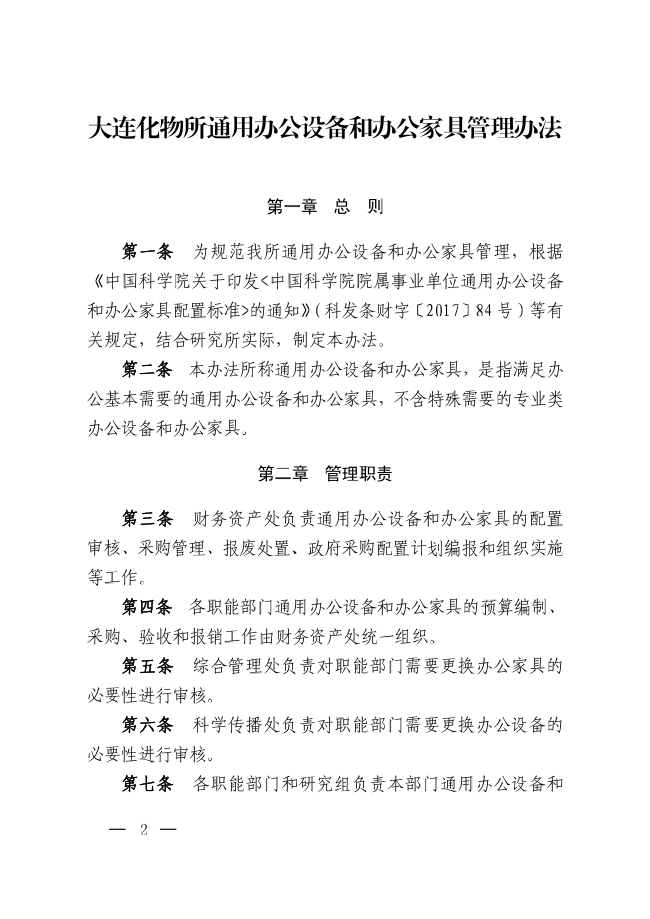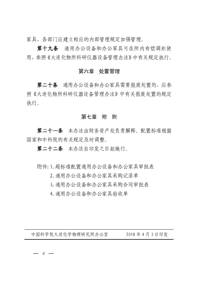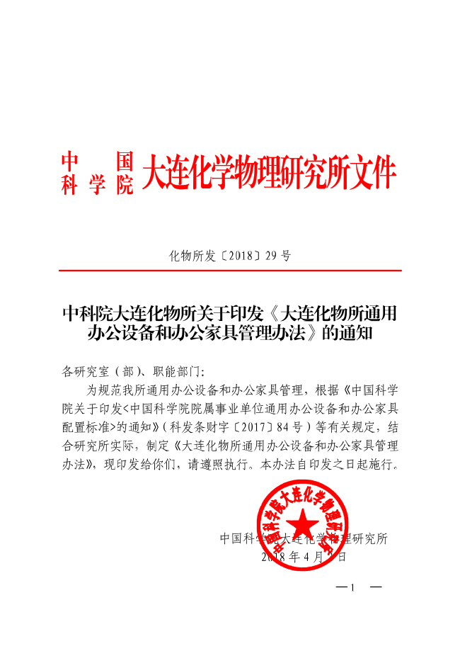 中科院大连化物所关于印发《大连化物所通用办公设备和办公家具管理办法》的通知