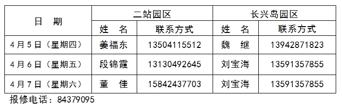综合管理处/长兴岛园区综合处清明节假期值班表