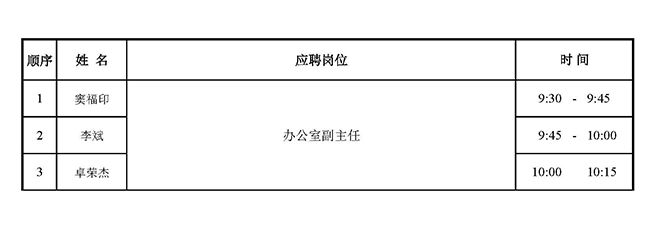 2、请应聘人员保持通讯畅通,并在本人答辩时间前半小时到场。