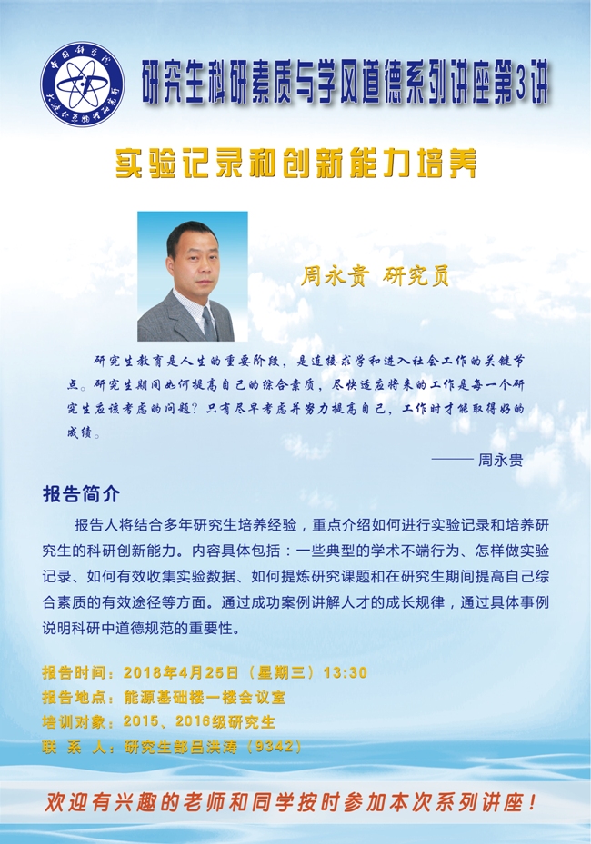 研究生科研素质与学风道德系列讲座第3讲——实验记录和创新能力培养