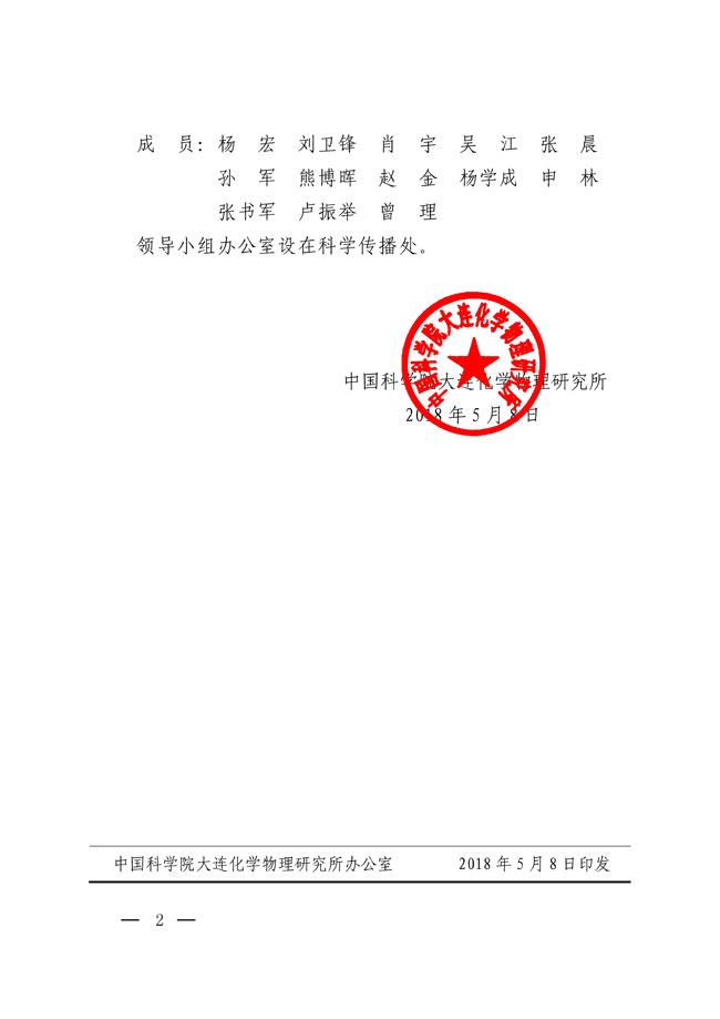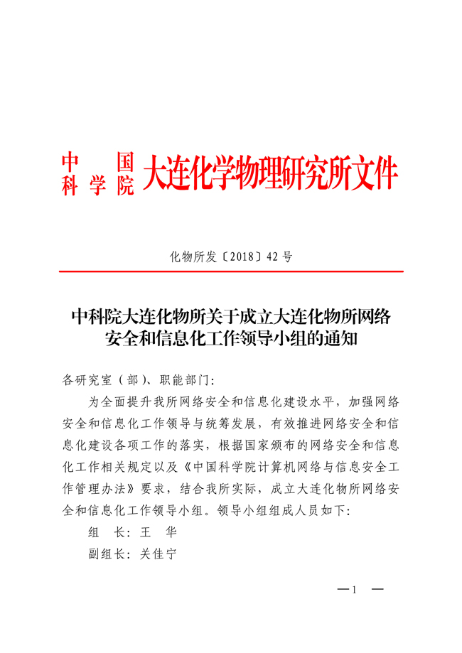 中科院大连化物所关于成立大连化物所网络安全和信息化工作领导小组的通知