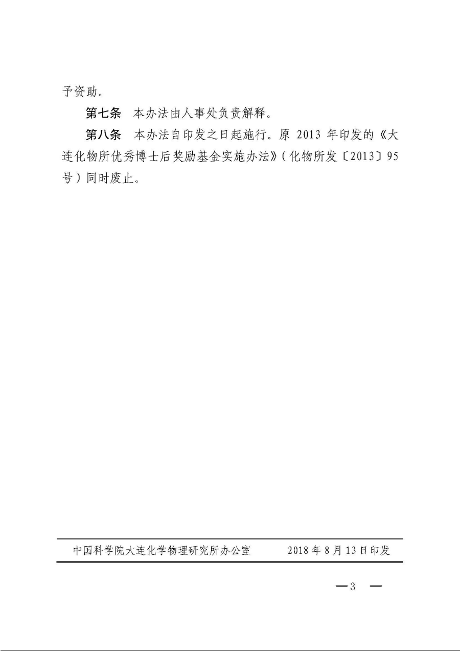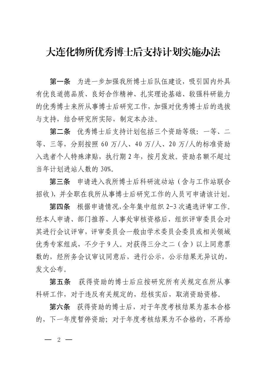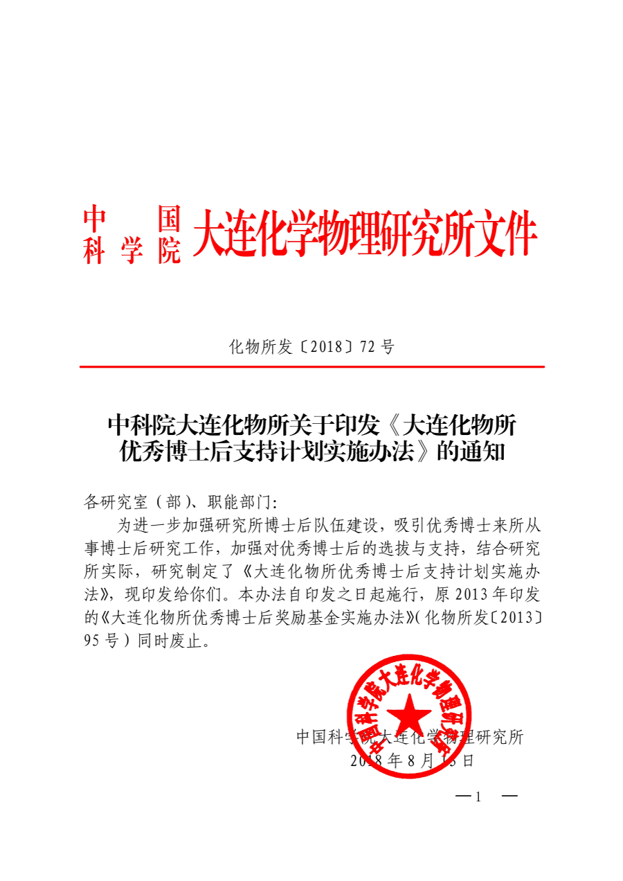 中科院大连化物所关于印发《大连化物所优秀博士后支持计划管理办法》的通知