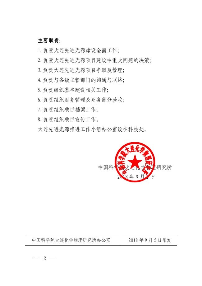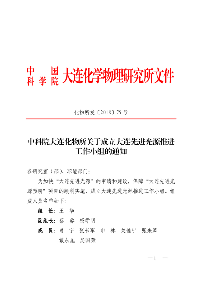 中科院大连化物所关于成立大连先进光源推进工作小组的通知