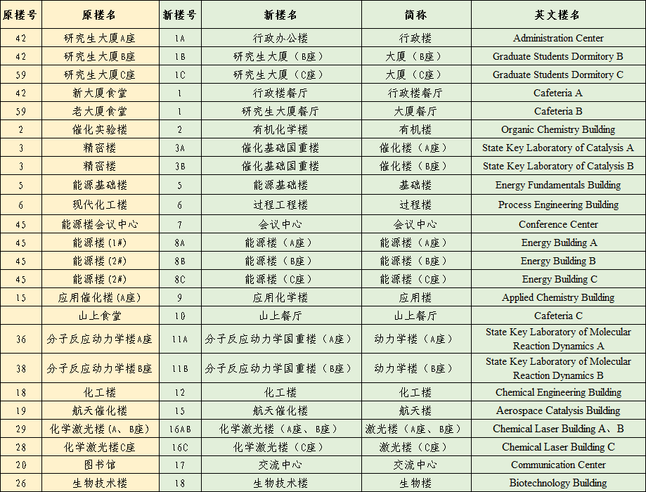 为进一步规范我所星海二站所区各楼宇楼名楼号,有效传播相关信息,塑造我所良好形象,本着“简单、实用、贴切”的原则,兼顾目前研究室(部)番号及楼号信息,结合调研国外大学和科研机构楼宇命名的情况及我所视觉识别系统建设工作,并经过多轮向全所职工和研究生征求意见和建议,我所对星海二站所区楼宇的楼名和楼号进行了统一调整。