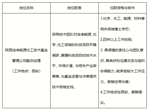 中科化物(大连)科技发展有限公司是中国科学院大连化学物理研究所全资的资产运营与投资管理公司,现本着“按需设岗、公开招聘、竞争上岗、择优聘用”的原则,现面向社会公开招聘人员,委派至陕西洁净能源化工技术基金管理公司担任副总经理。