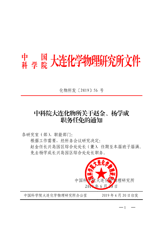 中科院大连化物所关于赵金、杨学成职务任免的通知