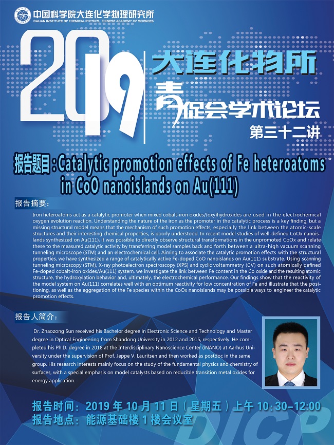 关于举行“Catalytic Promotion Effects of Fe Heteroatoms in CoO nanoislands on Au(111)”学术报告的通知
