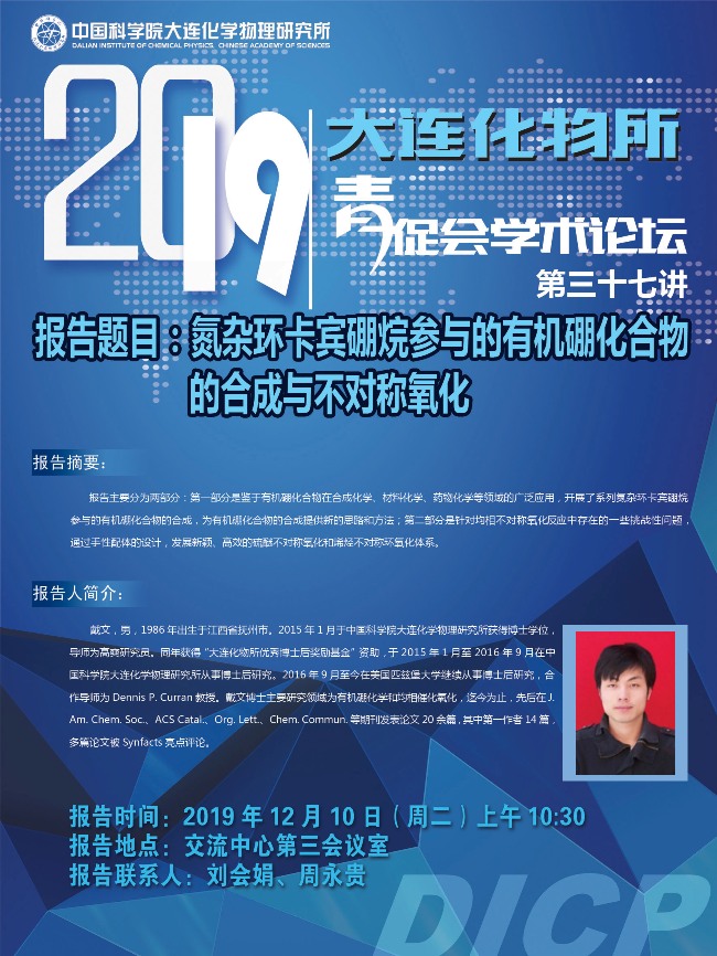 关于举行“氮杂环卡宾硼烷参与的有机硼化合物的合成与不对称氧化”学术报告的通知