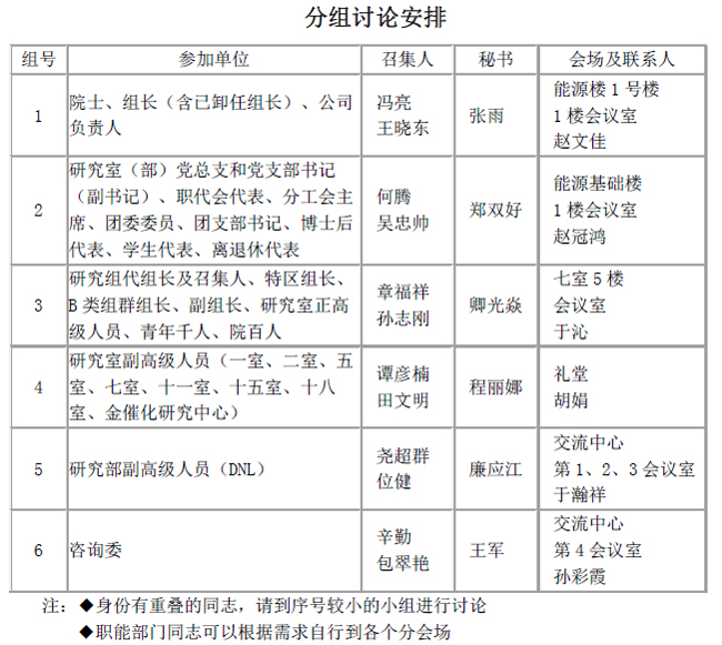 (4)此次会议是全所各类人员为研究所发展建言献策的重要平台,分会场也将进行现场签到,请大家严肃会议纪律,积极参加下午的分组讨论并踊跃发言。