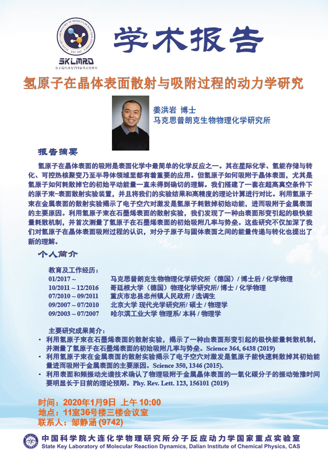 关于举行“氢原子在晶体表面散射与吸附过程的动力学研究”学术报告的通知