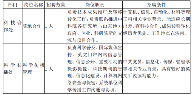 中国科学院沈阳分院本着“按需设岗、公开招聘、竞争上岗、择优聘用”的原则,按照《事业单位人事管理条例》《中国科学院人员聘用制度实施办法》《中科院沈阳分院人员聘用制度实施办法》等要求,面向社会公开招聘职能部门管理岗位工作人员,具体信息如下: