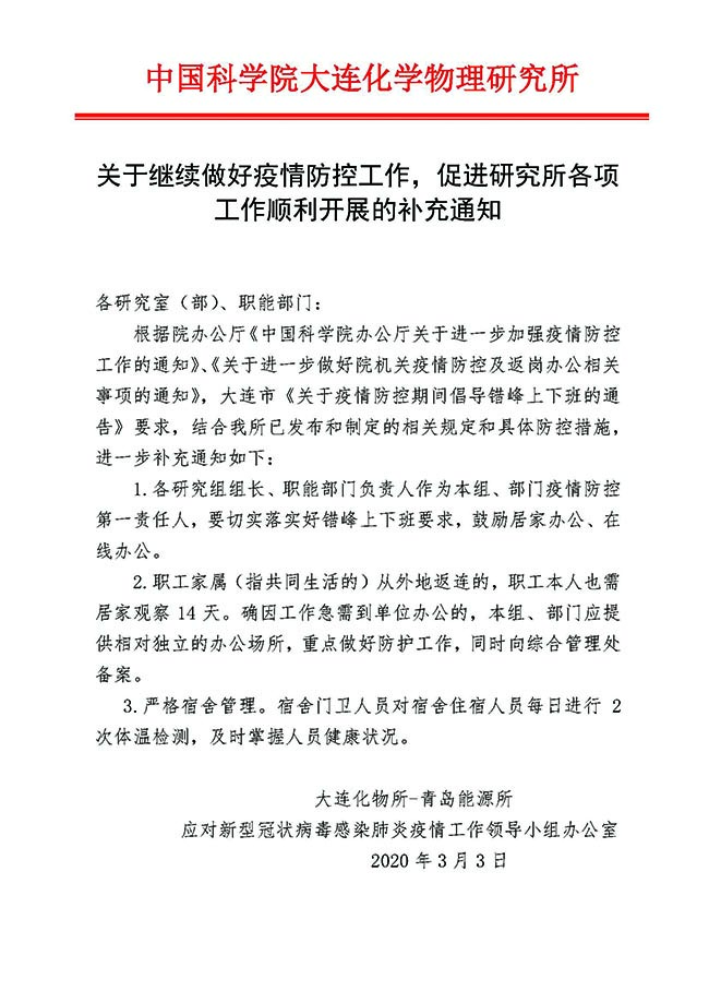 关于继续做好疫情防控工作,促进研究所各项工作顺利开展的补充通知