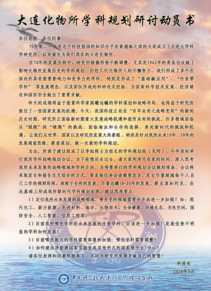 大连化物所学科规划研讨动员书