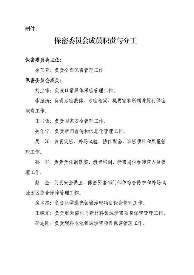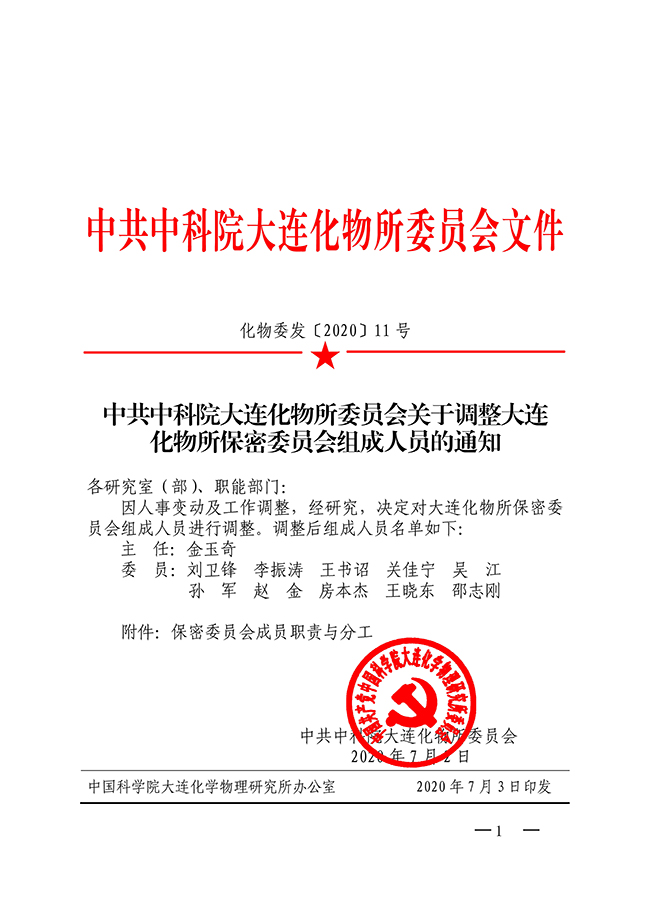 中共中科院大连化物所委员会关于调整大连化物所保密委员会组成人员的通知