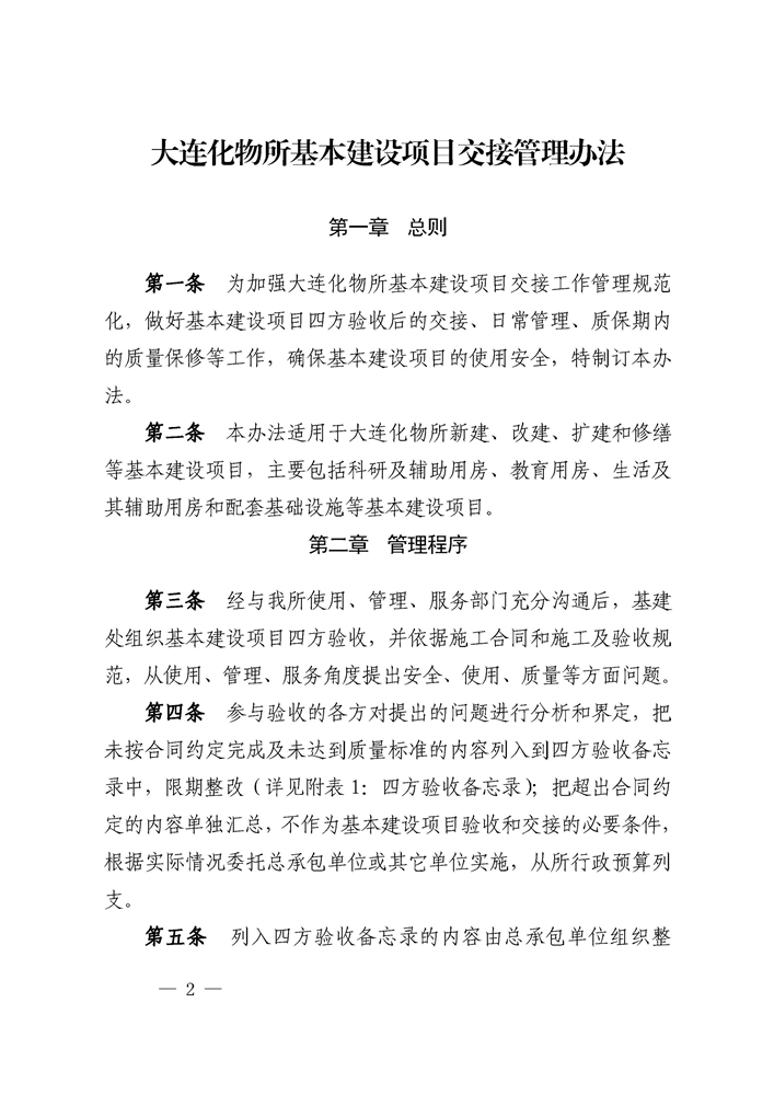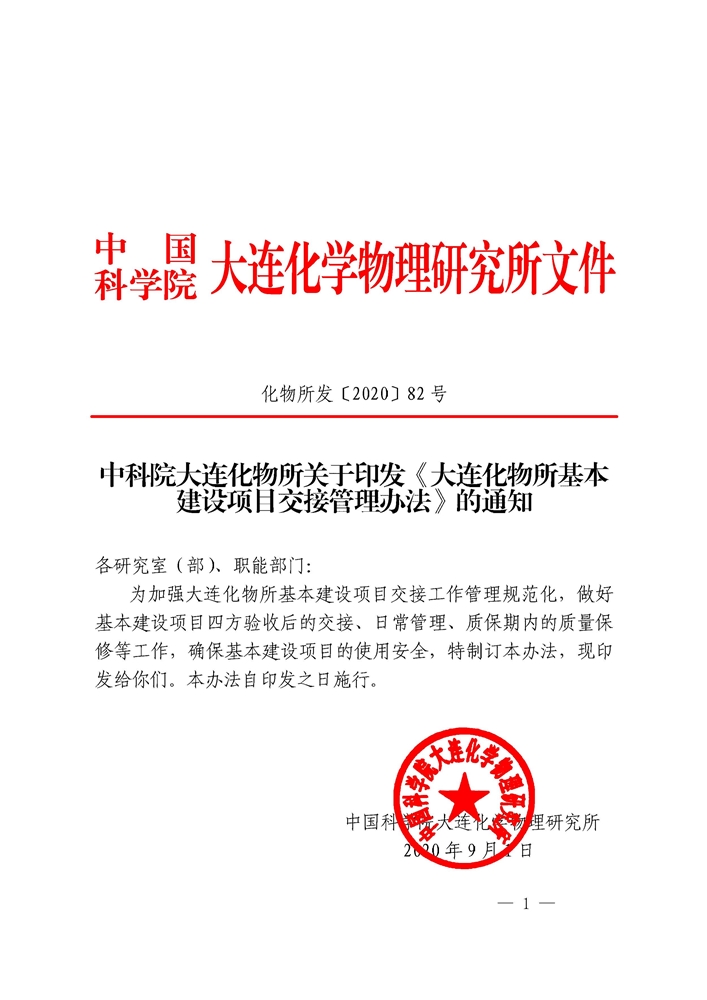 中科院大连化物所关于印发《大连化物所基本建设项目交接管理办法》的通知