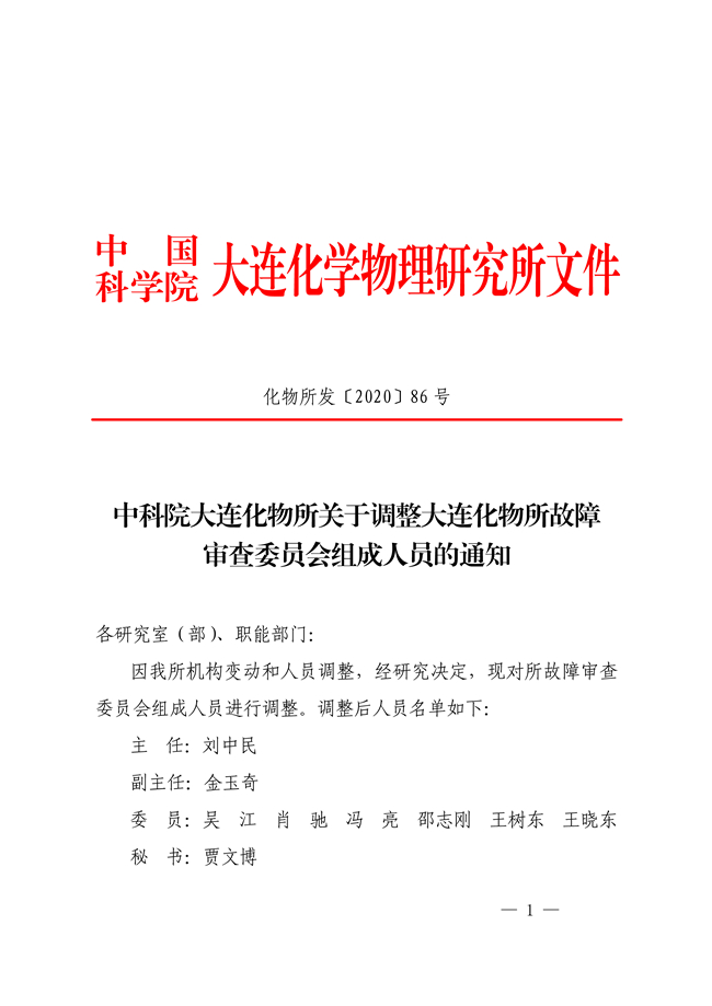 中科院大连化物所关于调整大连化物所故障审查委员会组成人员的通知