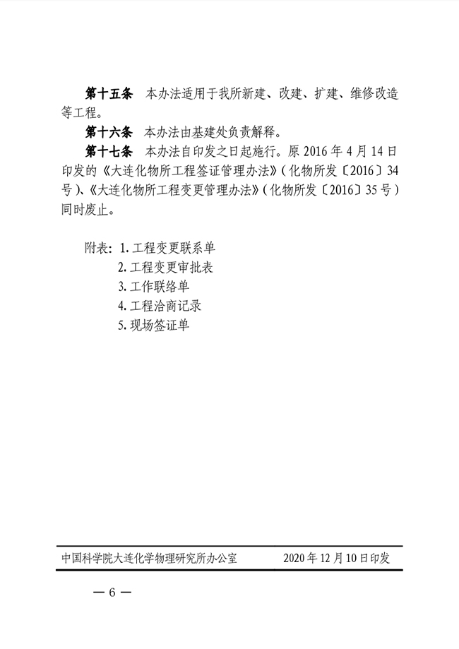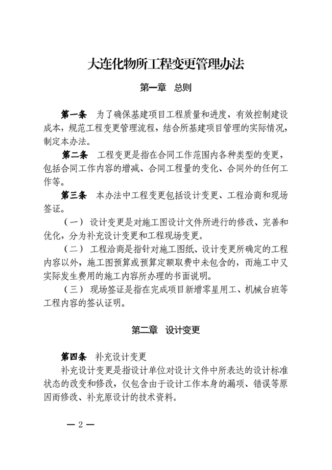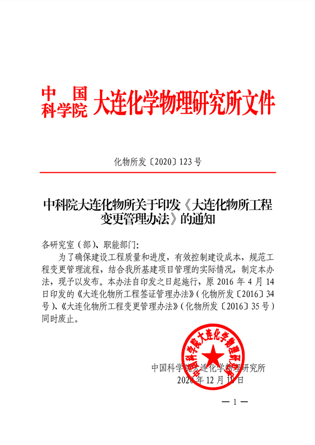 中科院大连化物所关于印发《大连化物所工程变更管理办法》的通知