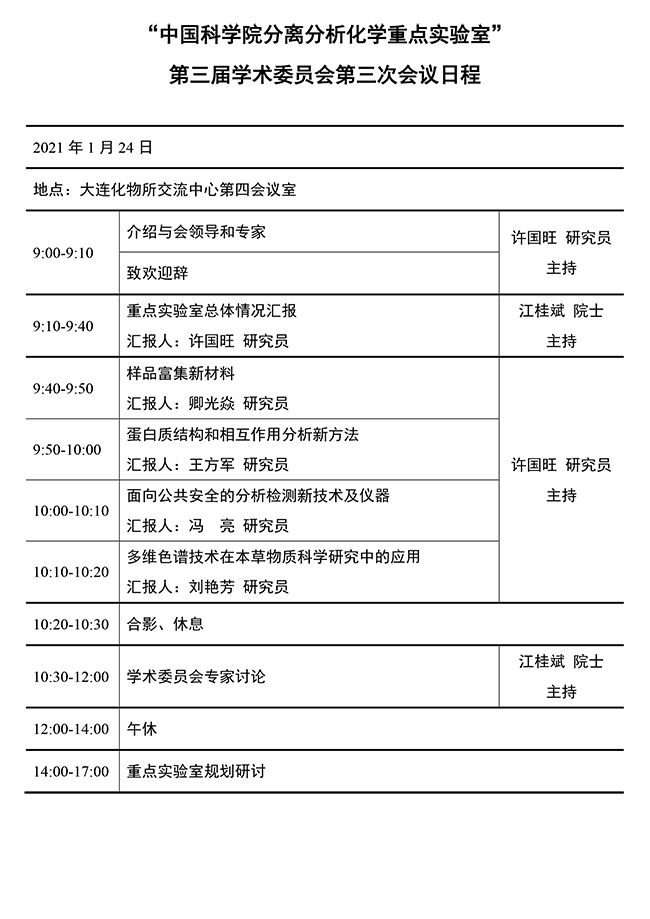 关于举行“中国科学院分离分析化学重点实验室”第三届学术委员会第三次会议的通知
