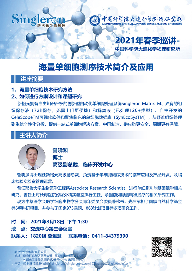 关于举行“海量单细胞测序技术简介及应用”学术报告会的通知