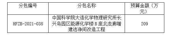 2.项目名称:中国科学院大连化学物理研究所长兴岛园区能源化学楼B座北走廊增建洁净间改造工程