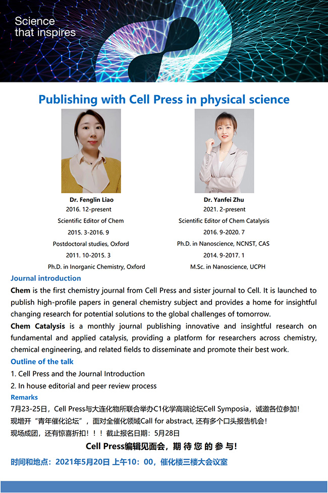 关于举行“Publishing with Cell Press in physical science”Cell Press编辑见面会的通知