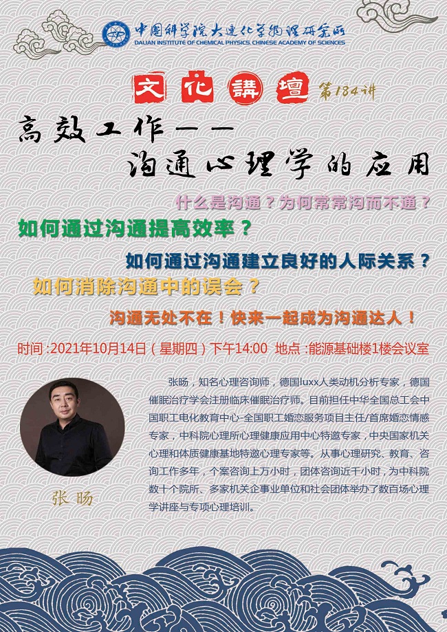 关于举办文化讲坛第184讲“高效工作——沟通心理学的应用”的通知