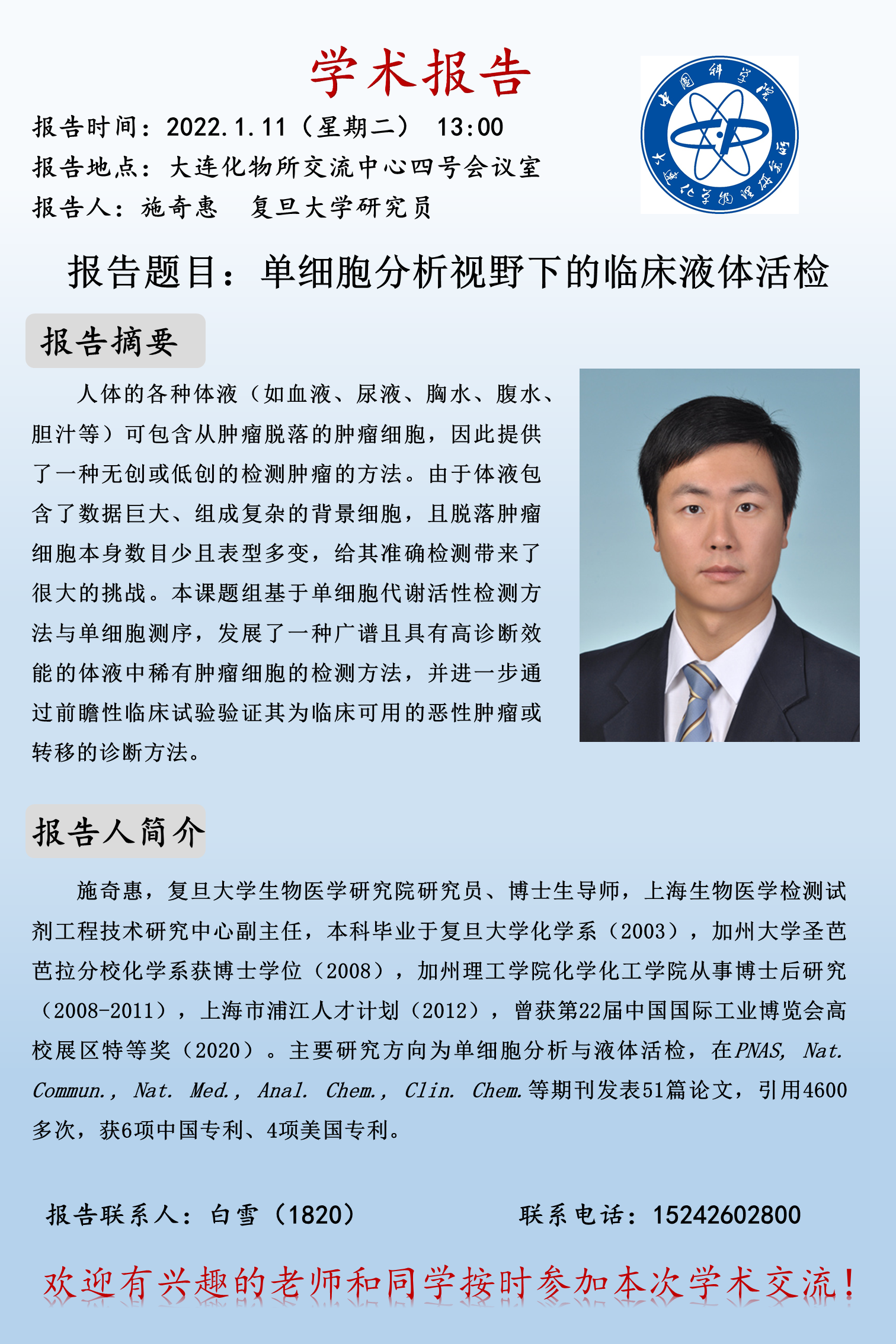 关于举行“单细胞分析视野下的临床液体活检”学术报告会的通知