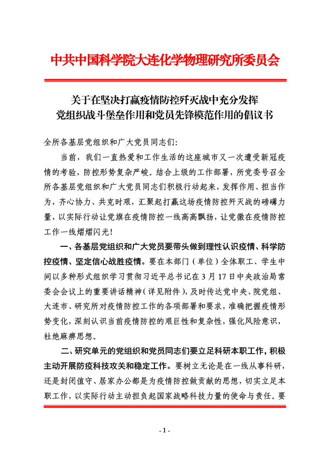 关于在坚决打赢疫情防控歼灭战中充分发挥党组织战斗堡垒作用和党员先锋模范作用的倡议书