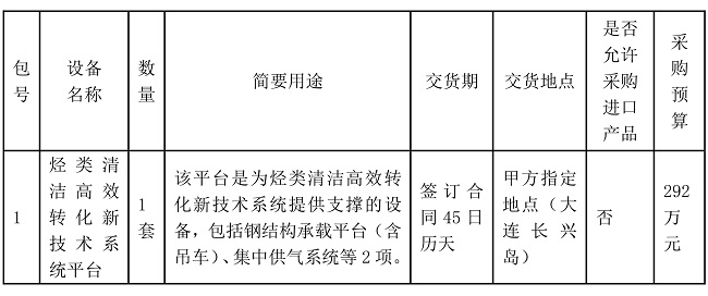 项目名称:中国科学院大连化学物理研究所烃类清洁高效转化新技术系统项目