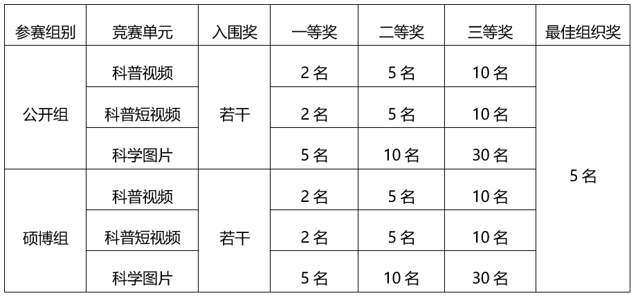 评审方式:专家评审团对所有参赛作品打分,评选出获奖作品(包括科普视频、科普短视频、科学图片)。