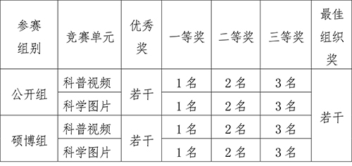 注:最终名额设置视具体情况确定,所有参赛作品均可参加由中国科学院举办的科普视频图片大赛。