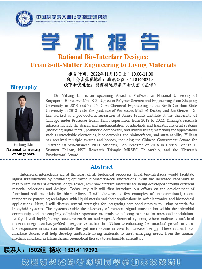 关于举行“Rational Bio-Interface Designs:From Soft-Matter Engineering to Living Materials”学术报告会的通知