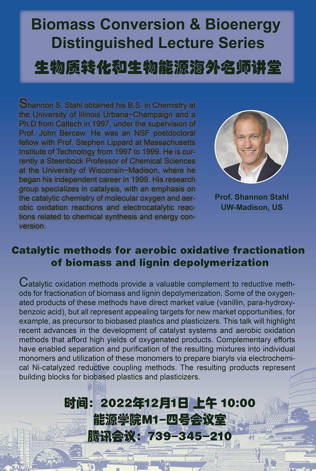 关于举行“生物质转化和生物能源海外名师讲座:Catalytic methods for aerobic oxidative fractionation of biomass and lignin depolymerization”学术报告会的通知
