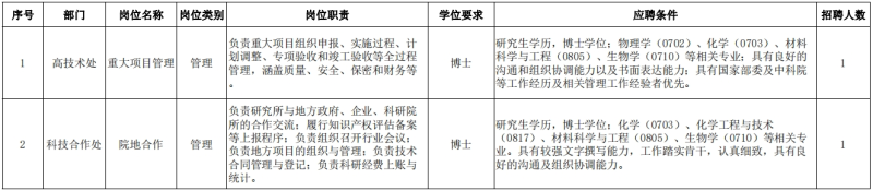 中国科学院大连化学物理研究所本着“按需设岗、公开招聘、竞争上岗、择优聘用”的原则,根据《大连化物所事业编制工作人员招聘实施细则(试行)》有关要求,现面向社会公开招聘职能部门工作人员2名,具体信息如下: