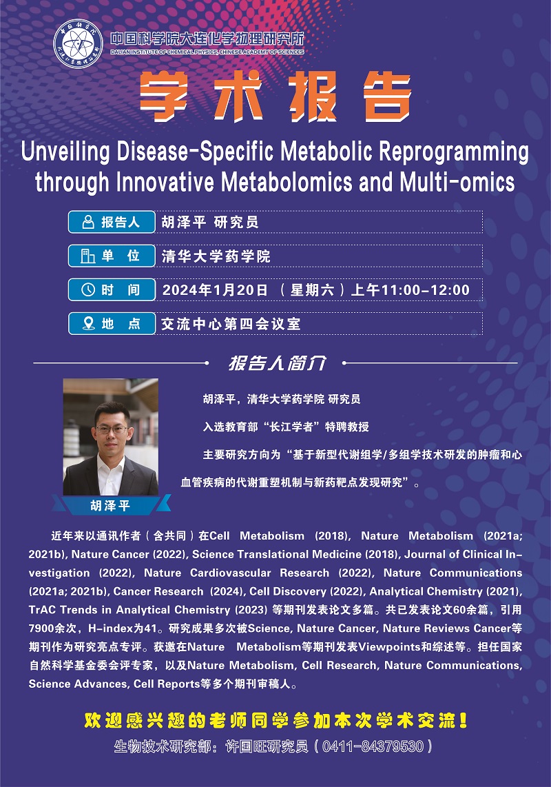 关于举行“Unveiling Disease-Specific Metabolic Reprogramming through Innovative Metabolomics and Multi-omics”学术报告会的通知